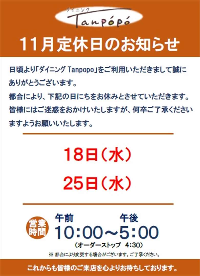日頃より「ダイニングTanpopo」をご利用いただきまして、誠にありがとうございます。