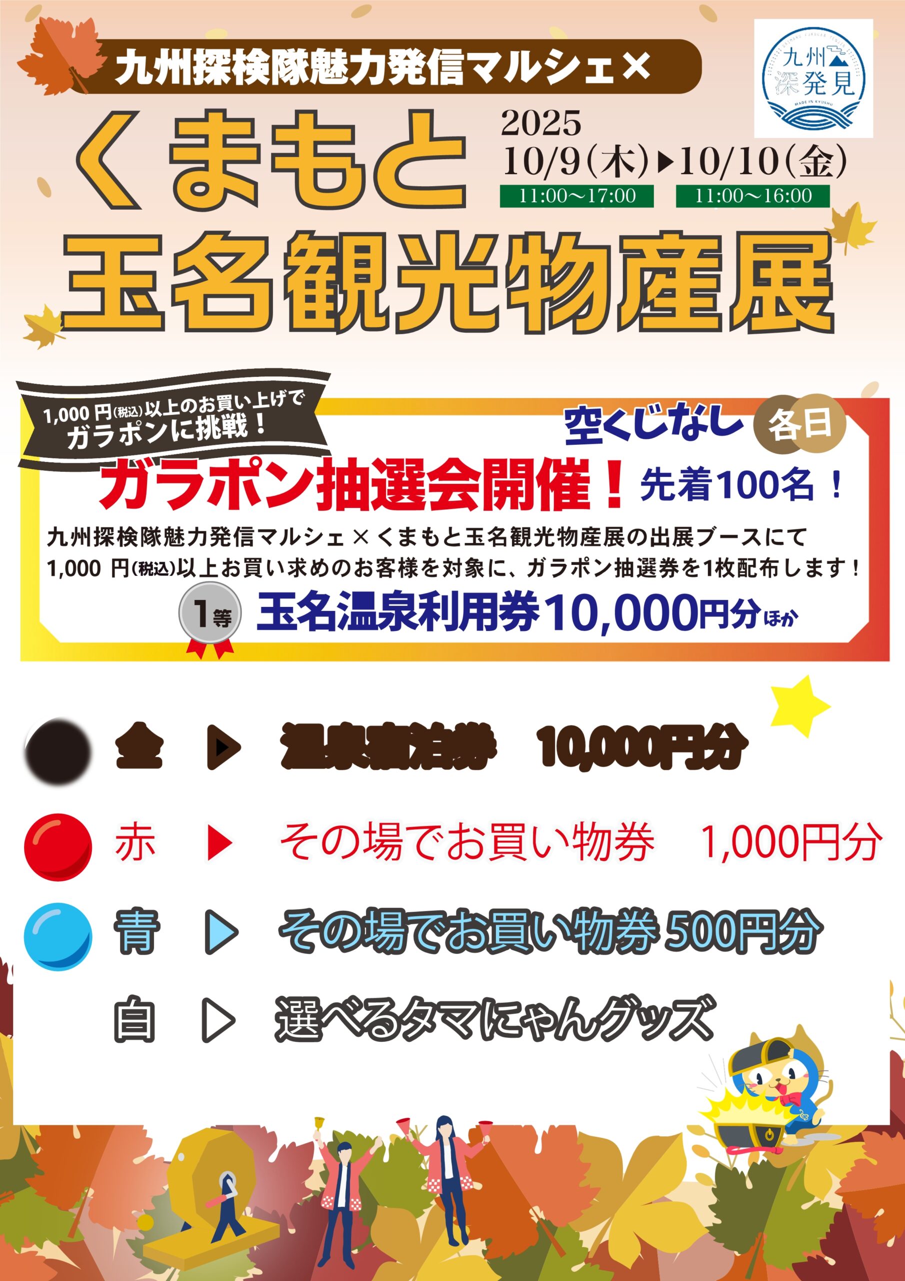 また、1,000円以上のお買い上げで、玉名温泉利用券などが当たるガラポン抽選会も開催されます。