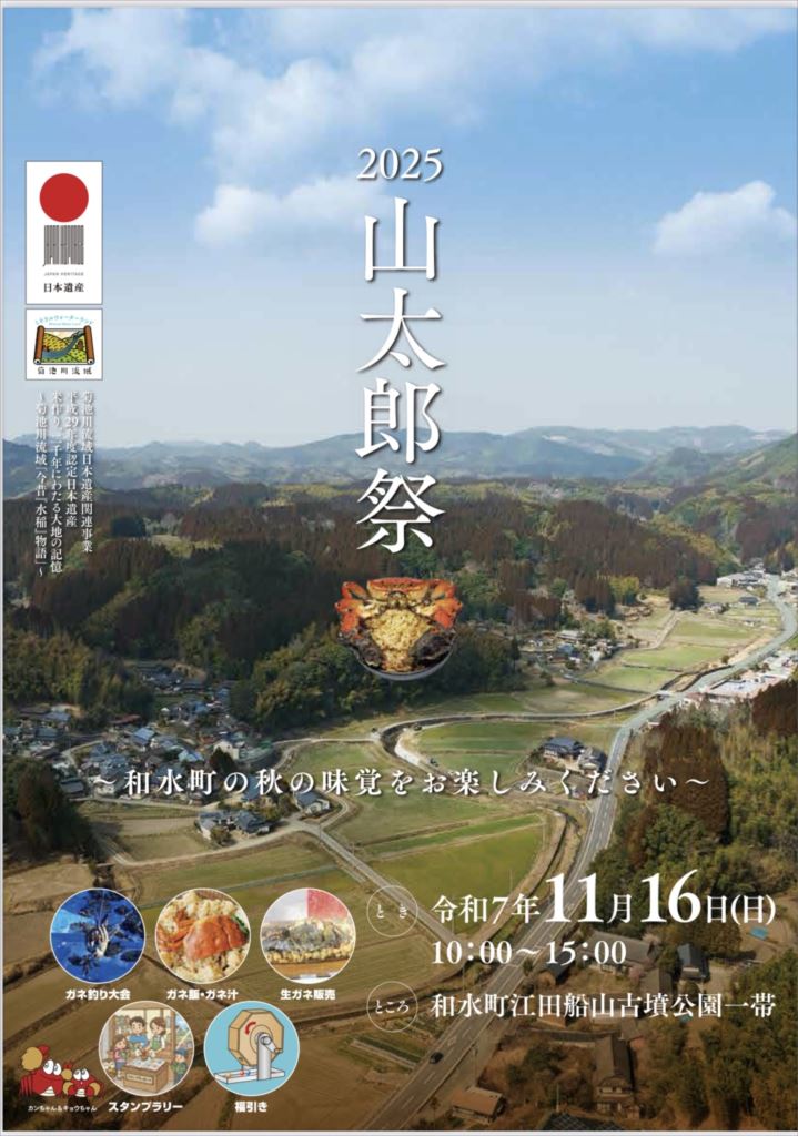 今年も11月16日(日)和水町江田船山古墳公園一帯で「山太郎祭」が開催されます。