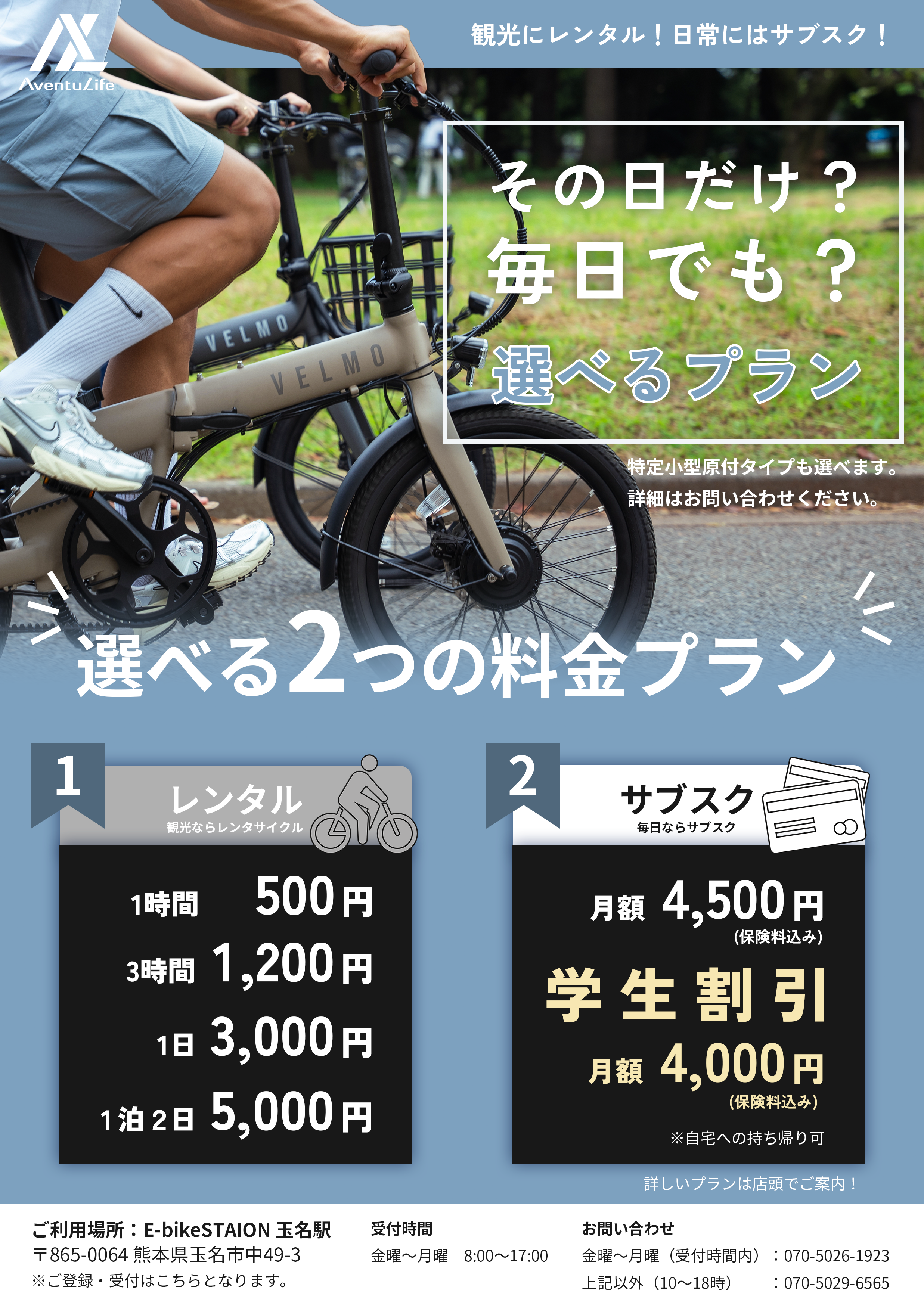 電動アシスト付きで、観光にも街歩きにも便利です。